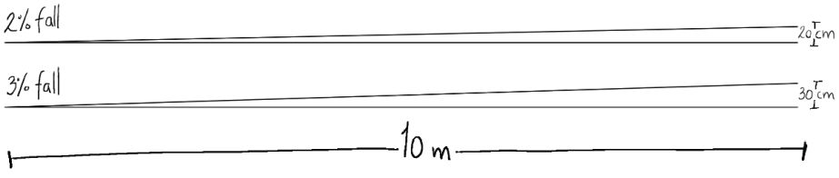 Fig. 2 viser hvor mye mange cm fall det blir på et 10 meter langt strekk.