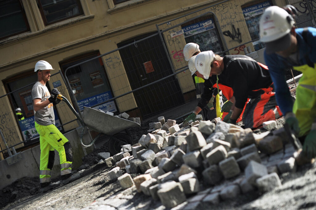 - Det kan også være en løsning å plassere stein på sidene av leggeretningen, på ferdig lagt stein og/eller i settelaget, slik at man plukker fra side istedenfor leggefronten.