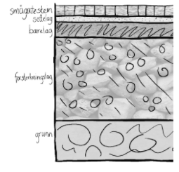 Fig. 3: Snitt av oppbygging av fundament til gatesteinsbelegg.
